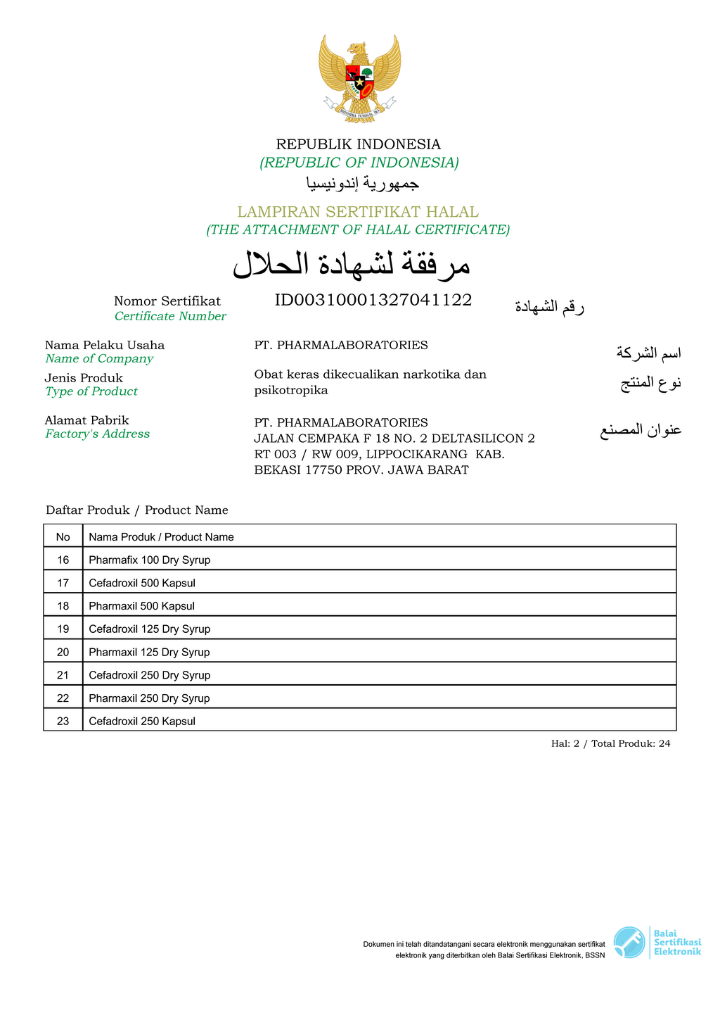In 2021 all PT Pharma Laboratories products have received a Halal Certificate with an A Predicate from MUI (Indonesian Ulema Council)
